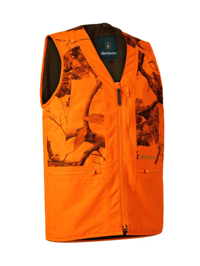 Visibilité maximale, liberté de mouvement et rangements malins : le gilet Eagle assure une protection efficace du buste sans l’encombrement d’une veste. Sa couleur orange garantit une haute visibilité sur le terrain et il est certifié CE et EPI CAT II pour une sécurité renforcée. Doté de la membrane Stormliner® signée DEERHUNTER, il offre une protection coupe-vent et respirante, renforcée par un traitement déperlant BIONIC FINISH® ECO pour faire face aux petites averses. Pratique jusque dans les moindres détails, il intègre une fermeture zippée double sens, des passants pour radio, ainsi qu’une bande frontale extensible qui permet d'ajuster la largeur. Les nombreuses poches zippées, dont une gibecière et des rangements intérieurs en mesh, permettent de tout transporter sans vous alourdir.