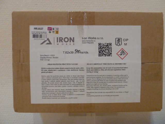 Munitions de surplus IRON WORKS Calibre 7,62 x 39 mm au normes CIP.